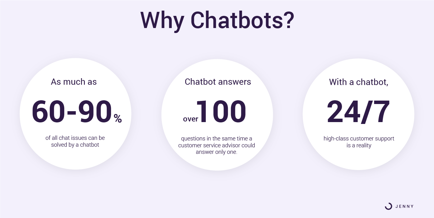 Chatbots are extremely efficient at answering frequent customer issues, and do so concurrently. So a chatbot can answer 100 customer questions in the same time a customer service advisor could answer one.